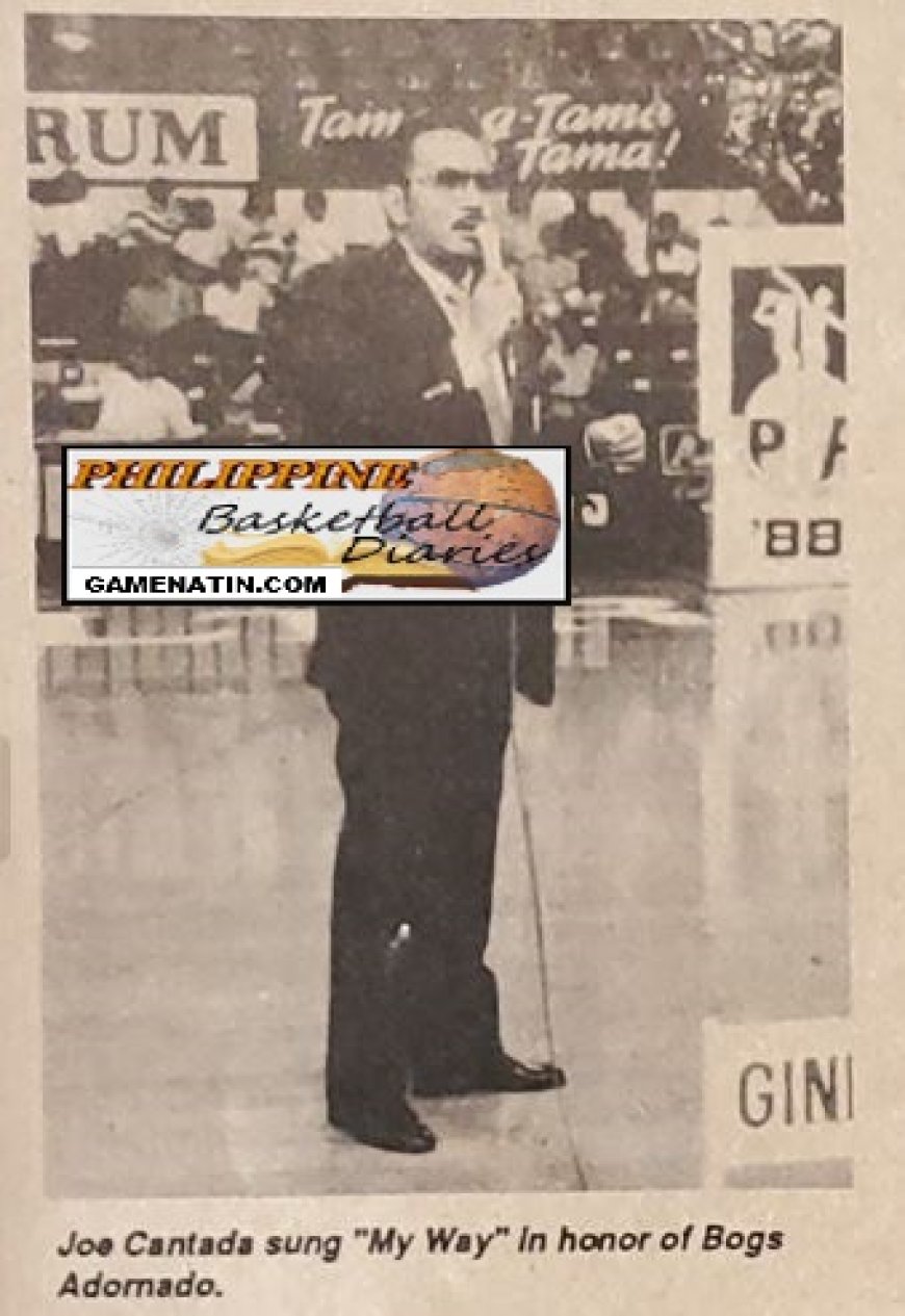 It was a night of hail and farewell, that old glitz and a bit of new hoopla, a reminder that this is the year of the dragon and the season. of the unexpected when the Philippine Basketball Association raised the curtains on the 14th edition of its annual floor show at the Ultra arena in Pasig. It was also a night when sportscaster Joe Cantada, acting as emcee of the more than an hour-long inaugural rites, was moved to sing a song. The song was "My Way" and Joe, who has a rich baritone, sang it in honor of William (Bogs) Adornado, the league's first three-time Most Valuable Player awardee, who upon his announcement of his retirement a fortnight ago, was being honored by the PBA for his unforgettable contribution to the growth and popularity of the pro league.