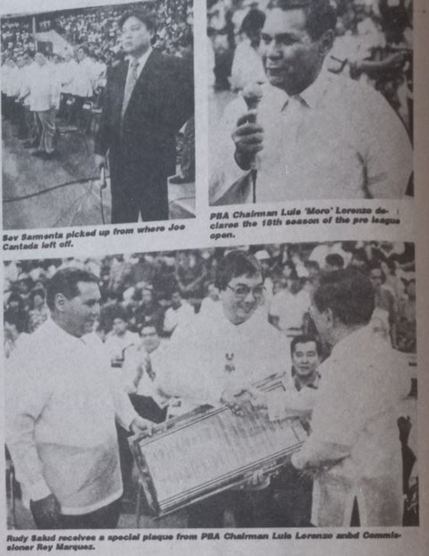 Visibly missed during the inaugurals of the 18th season was sportscaster par excellence Joe Cantada who is still struggling in his battle with the Big C. Although ably filling up Cantada's absence, emcee Sev Sarmenta, in all modesty, said he can never match the verve and wit of Smokin' Joe. And no one, for that matter, can do so at the moment.. Sarmenta urged the crowd to clap their hands for Joe, who for sure, was watching the entire proceedings on television. The fans definitely missed Joe's rendition of 'My Way' and portrayal of the role of 'Kissing Bandit' each opening day of the PBA But he'll be back soon! That's for sure.