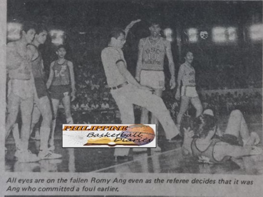 Romy only played for a year with the UM junior quintet under coach Pedro Obero. That was in 1979. One of his teammates then was Rey Perez who eventually left for Manila to join the MIT Cardinals that same year. After a year, Rey joined Yco in the MICAA. Eventually, the sweetshooting Perez made it to the national team in 1982 New Delhi games. After high school, Romy played in a class B Senior league in Davao. He was recruited by coach Mat Cubero of the J.Q. Enterprises. After a brief stint in the commercial league, he played for the senior quintet of the University of Mindanao main in Davao City. His stint with the UM seniors again only lasted for a year. He was coached by Arthur Sumalinog. Sumalinog was mentor of the Davao Allstars squad which saw action in the PABL Founders' Cup last year. While playing for UM during the 1980 national intercollegiate in Baguio, he was spotted by Nemie Villegas. Villegas, along with Pol Pujante (father of cagers Tonichi and Leo Angelo) convinced him to play for Letran. Romy agreed. While serving a year's residency at Letran, Romy played for Pop Cola in the FICFAA. In 1981, he donned the redand-blue jersey of the Letran Knights. Letran placed third behind Mapua Institute of Technology and San Beda College. . In 1982, Letran won the NCAA title. In the same year, Ang, together with seven other Letranites comprised the nucleus of the RP team that competed in the 2nd ASEAN Schools basketball championship held in Manila in December. Ang was skipper of the team which successfully won the crown. The squad was coached by Larry Albano.