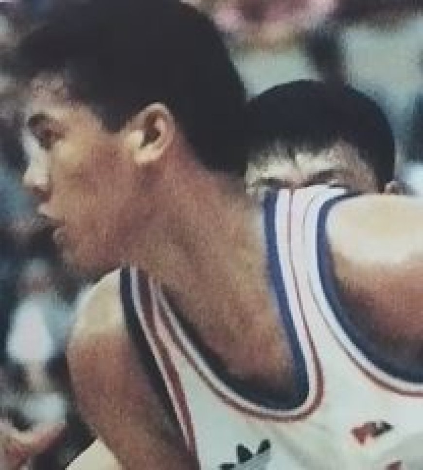 One says that athlates can hardly excel in the academic world, then what's guy like Rey Evangelista doing over the the UST Glowing Goldies camp? Rey is a masteral student at UST having completed a course in Agribusiness at the Visayan State College of Agriculture "Gusto ko lang talagang makapaglaro dito sa Maynila. That's why I tried out for UST," said the 6-3 Evangelista who hails from Ormoc City Layte. Rey was born December 28, 1971 and is the fifth of six children (Pamela, May, Jude, Christine, Rey and Agnes) of Climaco Evanglista and Carmela Fran. He is a cousin of UST big boy Raymond Fran. His sisters Christine and Agnes are members of the UST volleyball team. Rey started out as a volleyball player himself during his high School days at the St. Peter's College. Later, he shifted to basketball because people noticed he is a high leaper and is also good at positional plays. He played three years for the VSCA team under Dr. Othello Capuno. The team was crowned champion of the State Colleges and Universities Athletic Association Region 8 meet. "Pangarap ko kasi talaga na makapagJaro rin sa PBL at kung puwede nga ay makaabot pa sa PBA. Kaya kahit na tapos na ako sa pag-aaral, gusto ko pa ring mag-Masters para makapaglaro ako dito sa Maynila" he said. Rey claims that despite having been under UST coach Aric del Rosario for such a short period, he has already learned a lot of things. "Tinuturuan niya ako ng galaw ng sentro, paano dumepensa nang maayos. Bukod diyan ay dinedevelop niya ang stamina ko." However, Rey claims he still has a lot of aspects to improves on. "Okay na siguro ang rebounding skills ko. Pero kailangang ma-impove ko ang perimeter shooting so that I can be a threat to the opponents. Mahirap naman kasi yung panay sa loob na ako tumitira. Walang variety of shots. " Rey idolizes NBA players David Robinson of San Antonio Spurs and Michael Jordan of Chicago along with San Miguel Beer's Ramon Fernandez. "Siyempre, hindi naman natin puwedeng pulutin lahat ang ginagawa nila. Pero mayroon din tayong ginagaya kahit na kunti." UST is the only team now capable of foiling a predicted La Salle-FEU champi onship encounter. Regarding the Goldie's chances of making the finals, Rey said, "We have to win all remaining three games. Pero hindi na rin namin sagot ang kapalaran ng team. Kasi dapat na matalo nang dalawang beses ang La Salle o FEU.