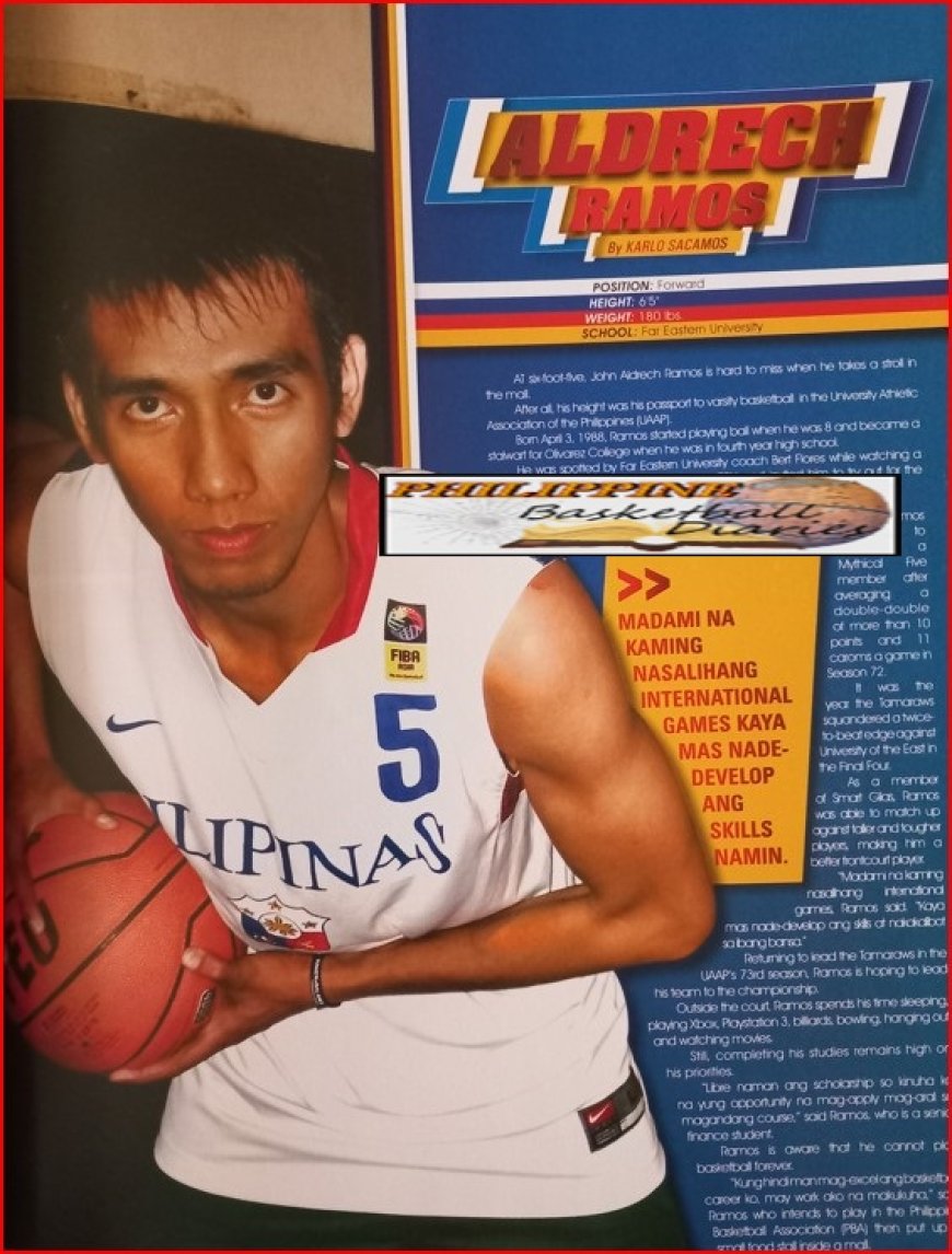 John Aldrech Ramos (born April 3, 1988) is a PBA player for the Terrafirma Dyip. At 6'6", he plays both the small forward and power forward positions. Ramos is also a decent outside shooter. He was part of the FEU Tamaraws team who played back to back finals in seasons 73 and 74 against the Ateneo Blue Eagles.