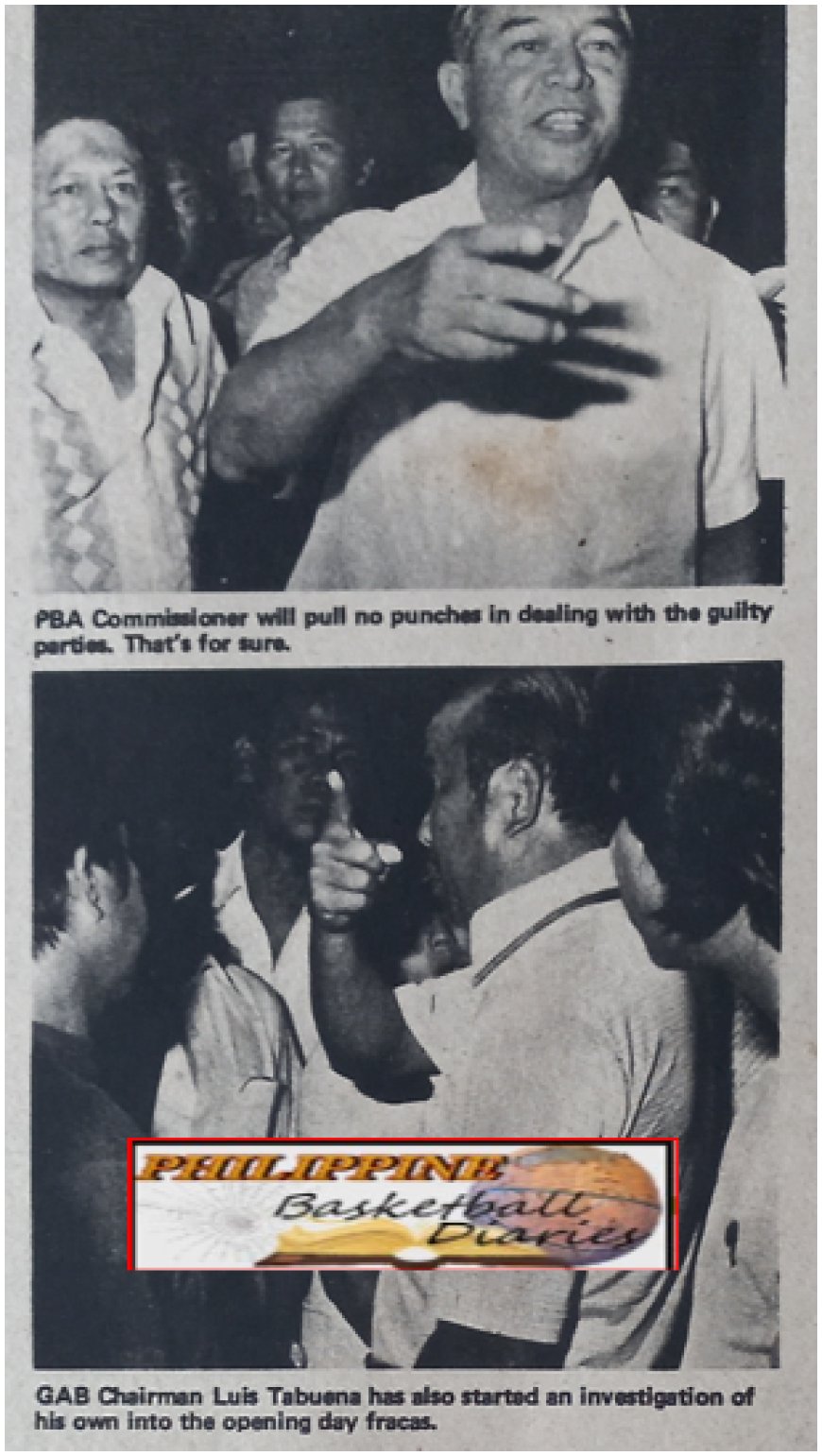 The country's premiere basketball tournament literally jumped off with a great big bang: and the sound, I assure you, was not from a firecracker or a 'de bawang' concoction thrown to celebrate one big, great bash. The sound was audibly frightening: onrushing uniformed men, people and players and onlookers and 'mirons' and fans scaterring every which way; while at the site where the rumble and ominous goings-on occured, sounds of bodies bump ing the iron panels (the gate toward the dressing room area) and grunts of a full-blown riot accompanied by an honest-to-goodness melee, reached my ears. In that kind of a situation, one instinctively thinksnot of rushing head-on to 'cover' what's going on, but of self-preservation. Thus, our hasty retreat toward the area near the Southern goal. Or to be precise, at the back of it. Where we saw Eddie Alinea of PNA and Roger Flores of Times Journal also temporarily 'seeking' refuge from the full-blown riot occurring at the precise moment. Truth to tell, I was keeping pace with Dante Silverio (who was walking toward dressing room before all hell broke loose. I was asking the Toyota coach why he was meted out a technical foul. "Ewan ko nga ba," was what Dante Silverio was saying at that time. Then, all of a sudden the eruption of those frighteningly ominous sounds from near the small door leading to the area near the dressing rooms. Sights we caught: uniformed Metropolitan Police men and security men in blue rushing toward the locality from where we retreated; a struggling Atoy Co trying to get himself free from those people restraining him (or holding him) and possibly trying to stop him from entering the door leading to the area of the fullblown riot; onlookers, kibitzers, a mixture of blue uniformed security guards (of the Araneta Coliseum) plus club-brandishing Metro Policemen trying to restore order and sending the crowd away from the arena of the rumble; spectators scampering and rushing pell-mell (lest they get hit by any object during the free-forall), photographers trying to barge through the kibitzers' cordon, desperately trying to train their lenses at the riot. For my part, being a woman, I merely stayed put near the back part of the southern basket. It would be folly to rush headlong into the scene just to be able to get a vivid picture of the melee. I might get clubbed or get a haywire 'tabig' or worse, crushed underfoot by the scamperings of the kibitzers. Later, after some 8 or ten minutes of this, the reporters from the different papers rushed towards the protagonists: the Crispa camp and the Toyota camp. Conflicting versions were heard. Rey Franco maintained that Jaworski hit him first', thus the ensuing 'gulo.' On the other hand, at the Toyota dressing room, Jaworski seated not far from Dante Silverio, just as stoutly maintained that it wasn't so. "Basta nakita ko na lang nagkakagulo..." " Baby Dalupan told Bulletin Today scribe Al Mendoza: "Si Soriano, apat ang gumugulpi sa kanya. Wala siyang kalaban-laban. (Four people were mauling Soriano, he was simply helpless). Ramon Fernandez, perspiring as he sat near Sonny Jaworski, sported a cut under his right eye. Soriano, meanwhile, when he emerged from the dressing room, had an ugly lump over his right eye and another lump beside his mouth. He had some bruises in the upper arms. Franco's reddened right ear he now and then touched as he walked out of the dressing room. The authorities from Precinct 2 halted Silverio's group as they came out in a bunch from the dressing room. This was done to ensure that the Crispa players then trooping out towards the southern exits and the Toyota hoopsters would not cross each others paths on their way out. (And perhaps figure anew in another konfrontas with fist and suntukan???) Commissioner Leo Prieto said a meeting would be held the next day (April 18). Prieto would get reports from security people who witnessed the mayhem. Regardless of the outcome of the investigations the atrocious (how else dub it?) erupting of an ugly riot is a definite black-eye in the overglamourized PBA.