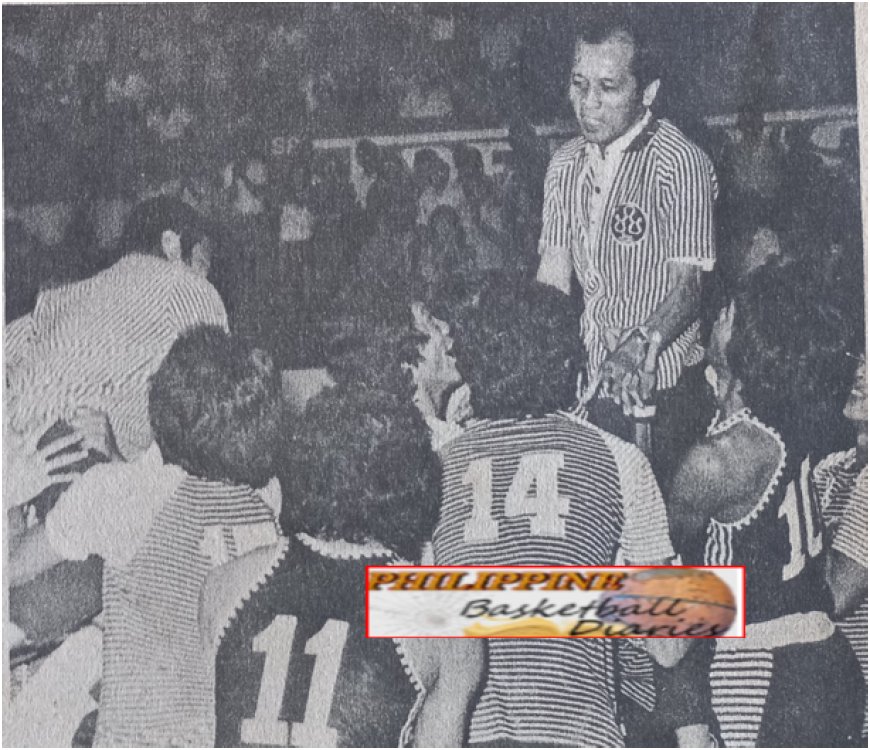 I'm still in some kind of state of euphoria. Finally he said: 'It's nothing so magic really; I just try to promote the camaraderie among the players. That's very important. Then I also let them feel that they can come to me anytime for anything. Of course, I have an excellent coach in Baby Dalupan. It's marvelous the way he trains the boys, disciplines them, and keeps them properly conditioned with very regular practices and workouts." To enhance team togetherness, Mr. Floro, on the advice of Coach Dalupan, converted the fourth floor of the Ambassador Bldg, along M.H. del Pilar in Malate, into quarters for the players, 'even when the company couldn't really afford it. The quarters, built in 1970, boast of all the conveniences needed by the team, from a gym for their calisthenics to two full-time cooks on 24-hour duty. For his part, Floro helps to strengthen the team spirit by being both father and friend to his players. His excellent PR comes to the fore when he deals with them. He is generous to a fault with them, and one only had to watch him when he is in the company of his players to realize that the relationship is open, easy, relaxed, and warm. He jokes with them, horses around with them, and constantly challenges them to an even better performance with generous gifts and incentives, the latest of which is a trip abroad either to Japan or the USA as a reward for bagging the MICAA cage crown. The Redmanizers are tentatively slated to leave for Honolulu on Nov. 26 to play three exhibition games against the best Hawaii could ofter. They will stay there for six days. The rapport among the Crispa players is very evident on the court.