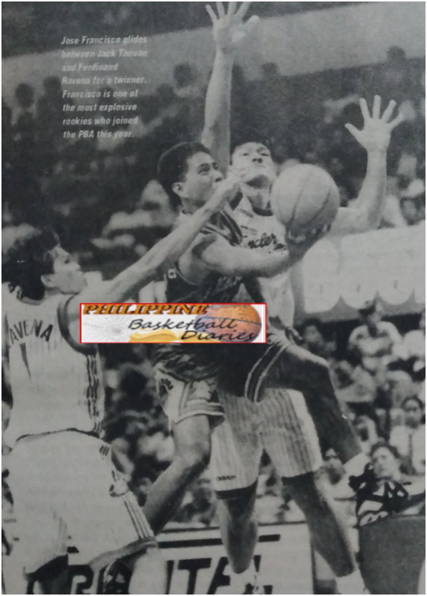 Far Eastern's Jose Francisco is another latebloomer in basketball. He did not play the sport as a high school student at the Meycauayan College. And he only decided to tryout with the Tamaraws when he was already on his third year as an Economics student. Still, the 6-1 1/2 forward has the natural moves of a cager and multi-titled coach Arturo Valenzona knows a real talent when he spots one. He took Francisco in and immediately made him a starter. This year, the defending champion Tamaraws aren't rated that highly what with a depleted frontline. The Tams are missing the services of Victor Pablo, Ivan Mondarte, Michael Otto and Bryant Punsalan. However, they're still up there in the standings and many are wondering how long they can hold such a lofty position. "Kahit na maraming bago sa team ay malaki pa rin ang chance namin na maretain ang championship," said Francisco. Among the FEU rookies are Alejandro Paguinto, Joel Chaneco, Jaime Castellví, Renato Gamboa, Emmanuel Estrella and Anthony Pabillore. Aside from Francisco, other mainstays of the Tamaraws are national palyer Johnny Abarrientos and Magnolia cager Nestor Echano. Francisco himself is all set to move up to the PBL. "Kapag tinanggap ang application ng JCT Group of Companies, kukunin daw ako ni coach Valenzona." Boyet, as he is fondly called, was born on September 15, 1970 and is the second of four kids (Rody, Boyet, Rommel and Marsha) of fisherman Romulo Francisco and the former Lolita Caracas, His younger brother Rommel tried out with the Tamaraws but did not make the team. "Medyo magaan ang timbang kong 160 pounds. Kailangang dagdagan ko pa ang 10 to 15 pounds para mas maging effective ako sa banggaan," he said." Of course, he notes that he has learned quite a lot already from Valenzona. "Lahat ng alam ko ngayon, siya ang nagturo. Pero gusto ko pa'ng maimprove ang defense at shooting ko." Boyet is actually only on his third year with the Tams, but this will be his final season in the UAAP. "Siyempre, gusto ko bago matapos ang stint ko sa FEU, mag-champion ulit kami. We'll do our best. Kung may awa ang Diyos, pangarap ko rin na makapaglaro sa PBA someday."