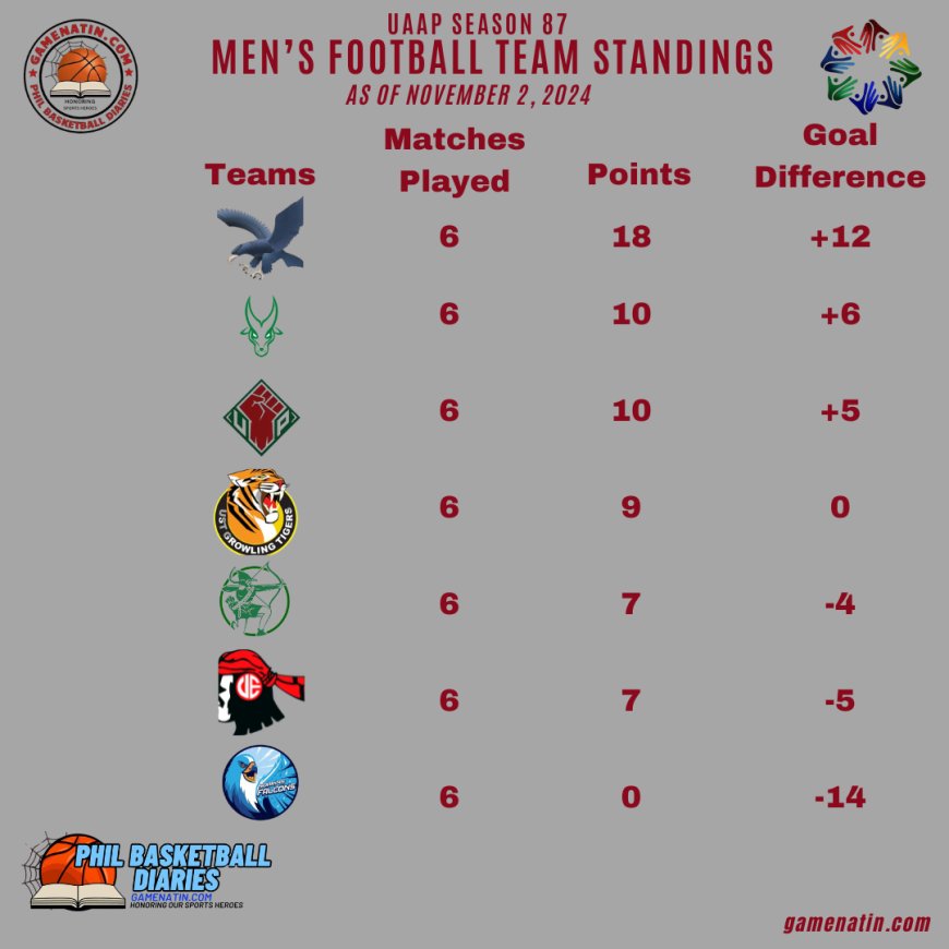 The Tamaraws and the Fighting Maroons are actually level at 10 points, but Coach Roman Oliver's squad is ahead on goal difference.