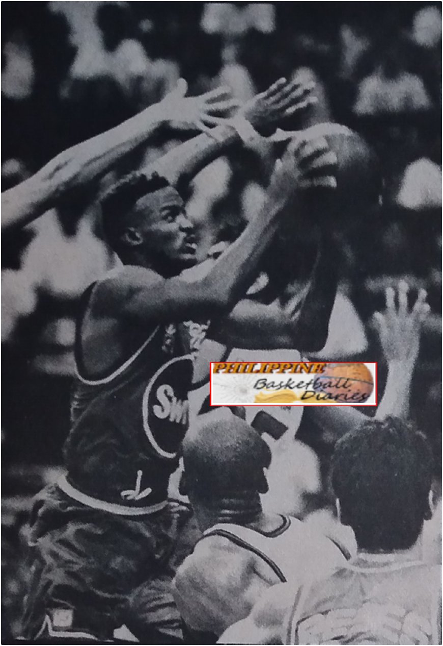 EVERYBODY figured that Michael Hackett's 103 points established back in November 21, 1985 was unbreakable, especially if one considers the fact that the Ginebra import logged these numbers against a very "obliging" opponent that Great Taste was that night. The record was set during a best-offive tussle for third place between the Gins and Coffeemakers. Great Taste, having lost the first two games, seemed to have lost also its desire to prolong the agony. Thus, the Coffeemakers offered no resistance whatsoever against Hackett. In fact, aside from Hackett, Arnie Tuadles, who was then playing for Ginebra, also recorded 23 assists -the most by a local until this year when Seven-Up sophomore Eugene Quilban tallied 27. And so with the games developing into a more physical, faster and more furious genre, people naturally expected Hackett's record to last till doomsday. But Tony Harris, the irrepressible import of the Swift Mighty Meaty Hotdogs, had other ideas it seems. He definitely is an optimist who feels that records are meant to be broken. Harris took a trip down South and led the Mighty Meaties to a pair of victories pushing Swift into the semifinal round of Compared to Hackett, Harris definitely had to bleed and work hard for every point he scored. Ginebra made sure of this. As early as five seconds into the contest, Harris had already made acquaintance with the floor of the University of San Agustin Gym as he was decked by Ginebra sophomore Anthony Poblador. In fact, the first quarter went agonizingly slow and lasted for about 50 minutes because of the many ceasefires due to fouls, warnings, technicals and delays on account of verbal tussles. "We knew we were going to war!" said Harris. He added, "It's a good thing we came prepared." For the record, Harris tallied 29 points in the first quarter, 30 in the second, 27 in the third and 19 in the fourth. His combined 59 points in the first half is an all-time record, too, eclipsing the 55 scored by Hackett in 1985. In logging 105 points, Harris made six triples, 21 field goals and 45 free throws. His 45 charities is another record erasing the 30 made by Carlos Briggs, another Añejo player, on November 5, 1989. Harris started his stint with Swift with 87 points against San Miguel Beer. That stood as the fourth best (now fifth) behind Hackett's 103, Briggs' 89 and Larry McNeil's 88. After that, his output went down as he could only taily 77 against Purefoods; 59 against Shell and 54 against Seven-Up. And so, people started to think that Harris' was nothing but a ningas cogon type of scorer and his average was bound to go down further as the tournament progressed. To which Harris said, "I'm not particular about records. I didn't come over to establish records. I came over to help my team win games and perhaps a championship." But Harris was just being modest. He didn't like the idea of people saying his game was going down. Down South, he started his upward swing by nailing 82 points as Swift walloped corporate rival Purefoods, 166-144, at the Rizal Memorial Colleges Gym in Davao City. His 82 points ranked seventh best in a tie with Freeman Williams output. Williams scored 82 while playing for Tanduay in 1987. Of course, coach Yeng Guiao, team manager Elmer Yanga and the rest of the Swift bench are happy to have Harris around. In fact, they are now looking forward to winning their first championship. The only thing that's causing anxiety at the Swift camp is whether Harris can keep up the good work. If he does, Swift has got it made. If he does not, then that's a big problem. From all indications, though, Harris has good attitude. He may be a snob at times but a regular guy the next moment. But he's definitely just right for Swift!