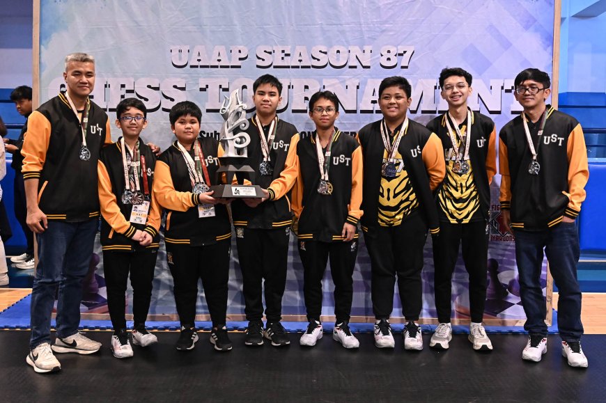 Daren Dela Cruz's silver on Board 2 helped UST secure second place, while National University Nazareth School (NUNS) took third. Dela Cruz was joined by teammate Iana Sotaridona, who won the bronze behind NUNS' Juzeia Agne (silver) on Board 3, and also earned the top rookie citation.