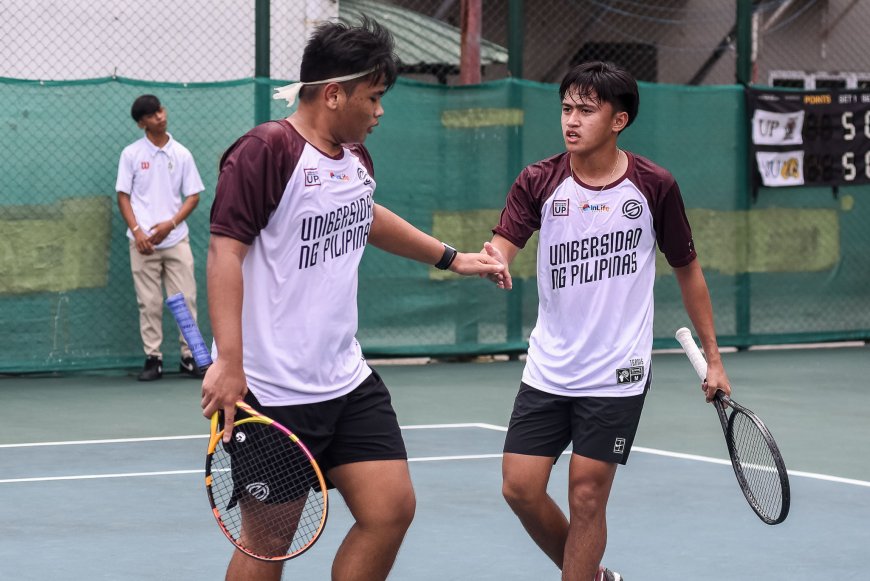 The tie was leveled at two apiece after Fighting Maroons Raymund Goco and Lance Fernandez triumphed over Angil Balaoing and Christian Padilla in the first doubles match, 2-6, 6-3, 10-8, forcing the decider.